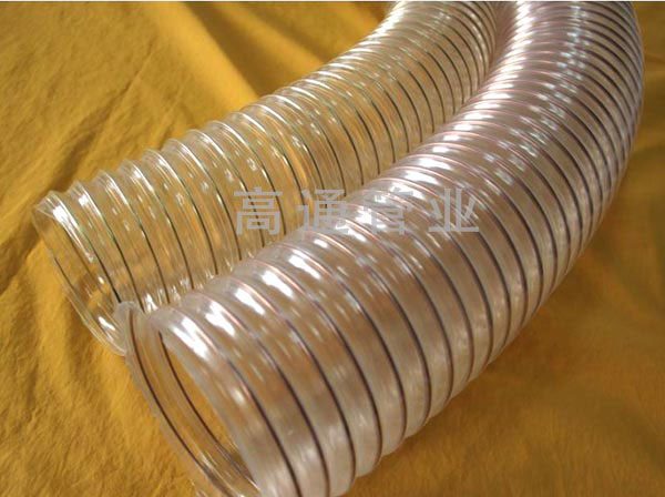透明塑料吸尘波纹管(耐高温透明吸尘伸缩管)弹簧骨架吸尘管构造:管壁上遮盖有强弹力的镀铜钢丝;管壁:特别的顶部聚醚型聚氨酯,壁厚约0.6-0.9mm,内壁光滑;耐磨性是一般而言PVC软管和橡胶管的10倍以上;温度范围:约-40℃至90℃,短时间内可达150℃。