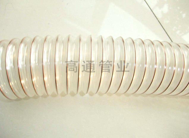耐磨损PU电线软管(大直径钢丝框架波纹管)透明聚氨酯挠性软管性能:极耐磨损,镀铜钢丝可提高软管强度,高压,真空和抗压缩,优于的高轴强度,使输送物料平顺,耐化学性好;弯曲半径约为外径的3倍,可以获释静电。